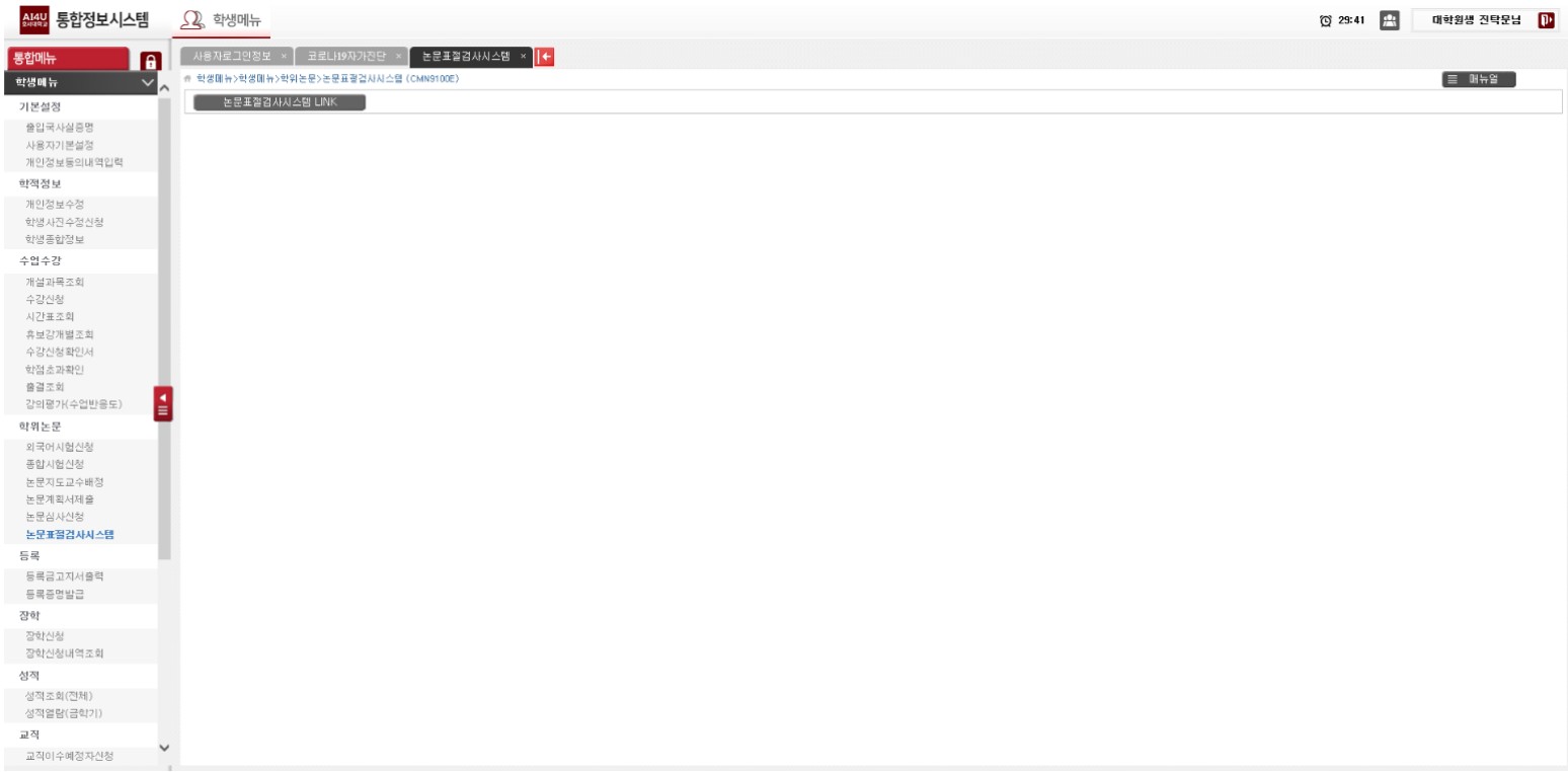 Integrated Information System → Student Menu → Thesis → Thesis Plagiarism Check System LINK